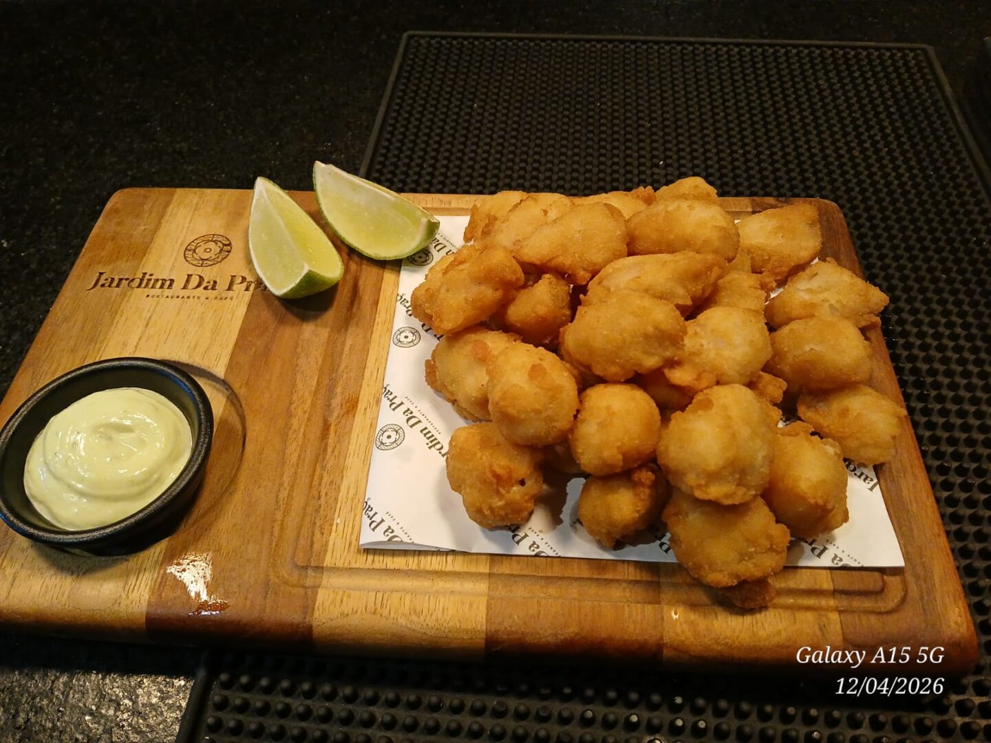 camarão a milanesa 400gr, arroz piamontese, farofa, salada e batata frita